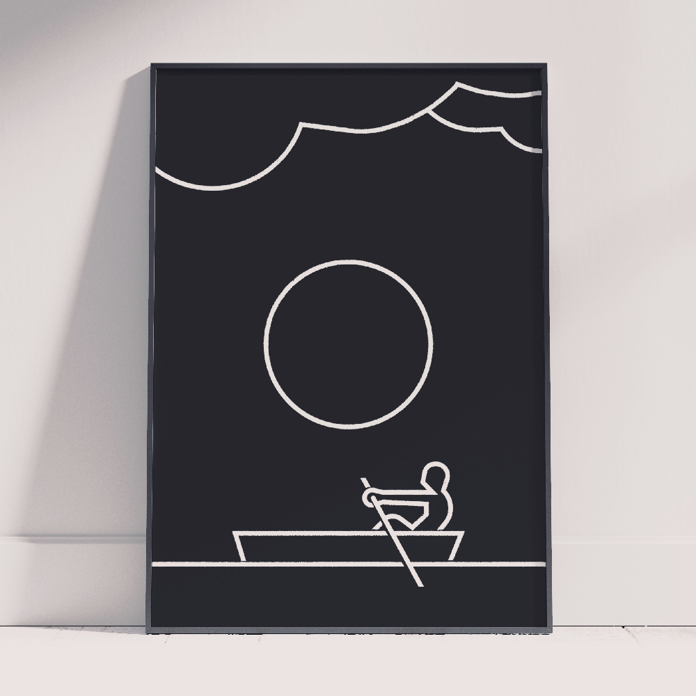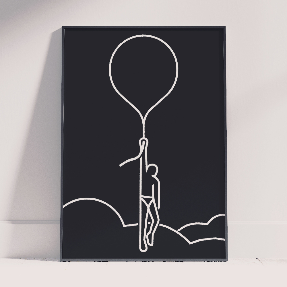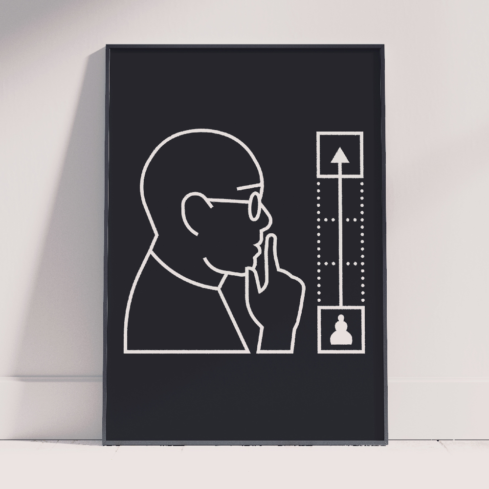 Lines A single line weight, white on black with a subtile hint of depth. This powerful simplicity is all it takes to contextualize the human subjects in a unique way.